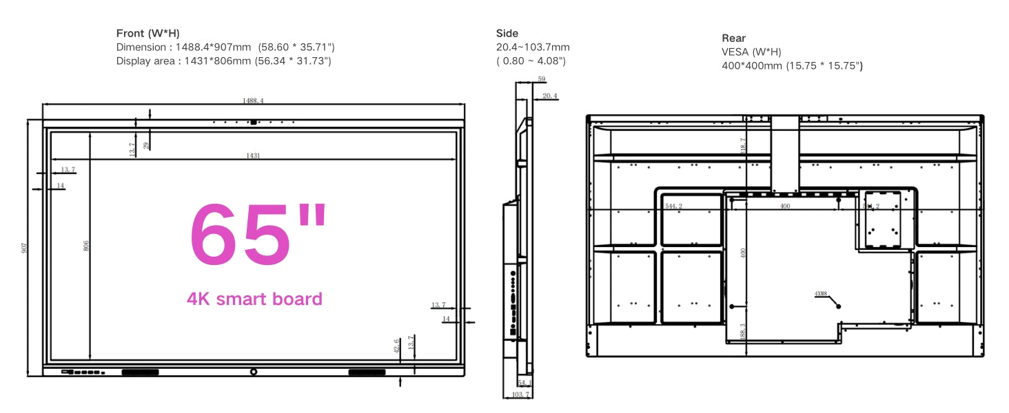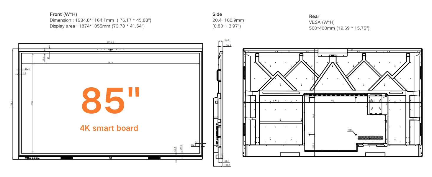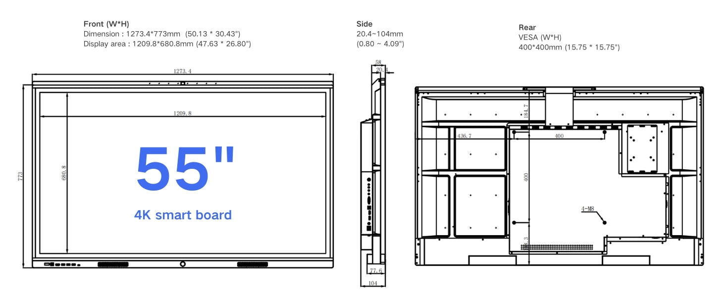 4K UHD All-in-one Smart Board for Classroom Home Office Studio (Wall Mount Included)