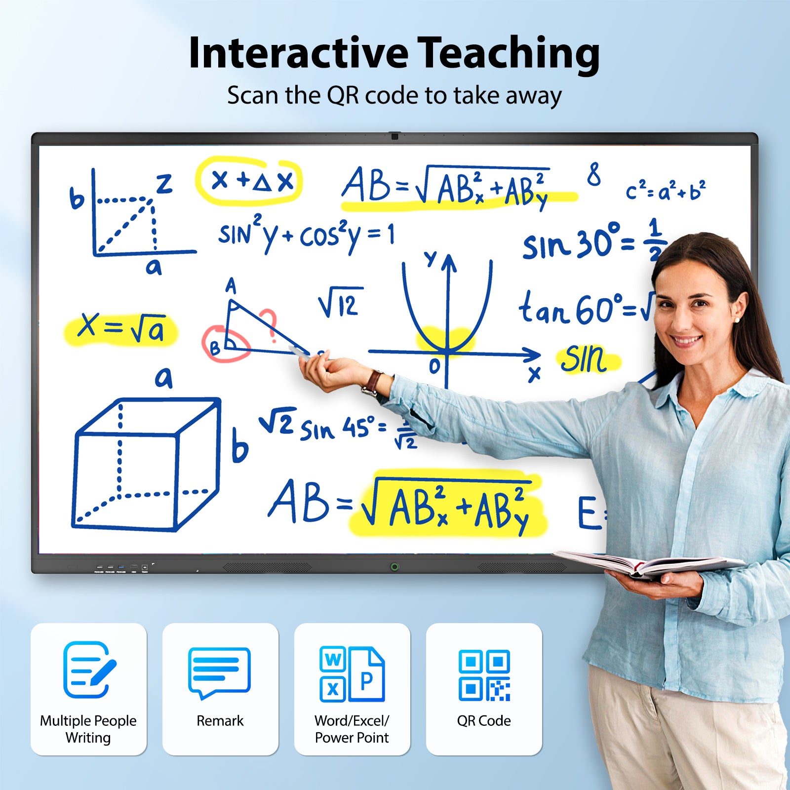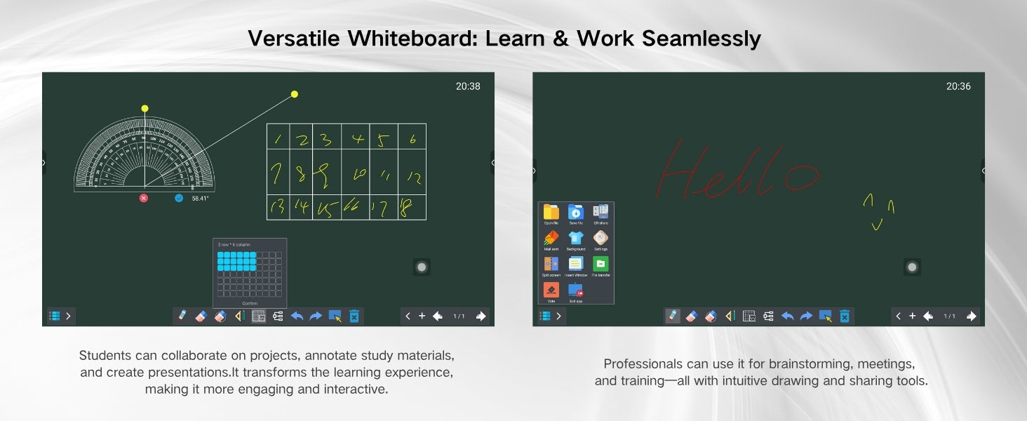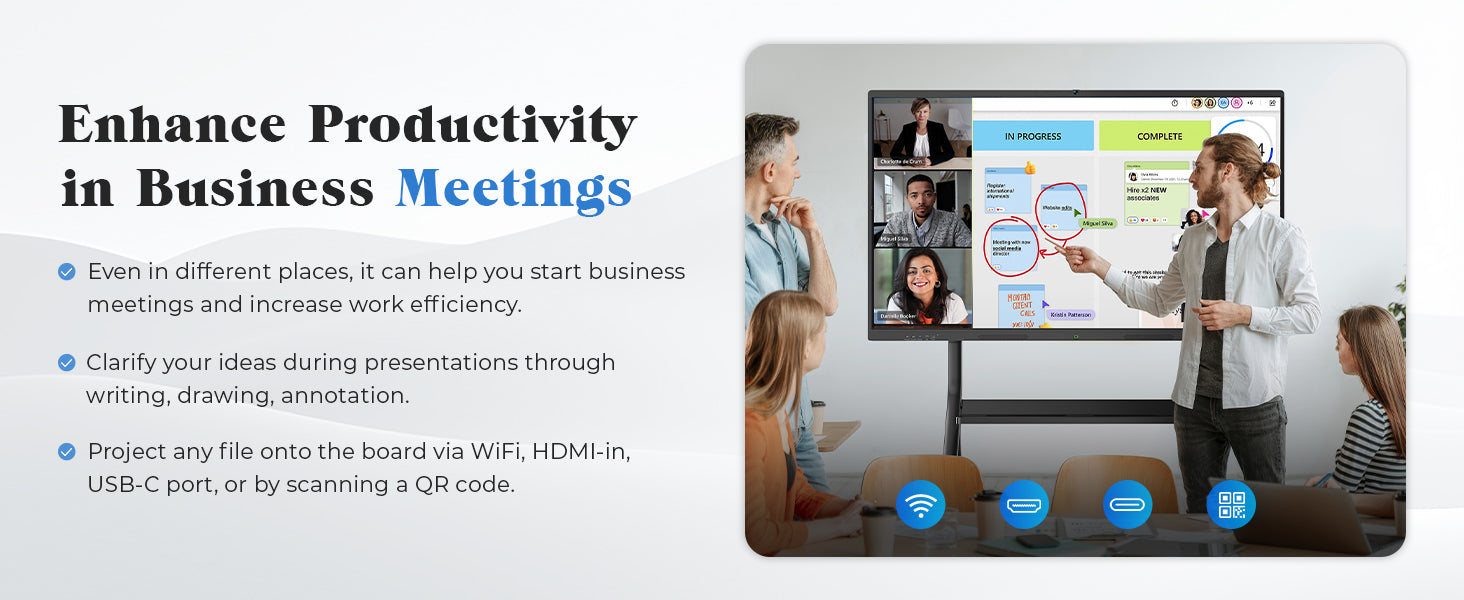 - INSTANT QR CODE FILE SHARING : The electronic whiteboard simplifies sharing—scan to wirelessly distribute notes and files, cutting sharing time compared to traditional methods. Great for busy classrooms and fast-paced office use.