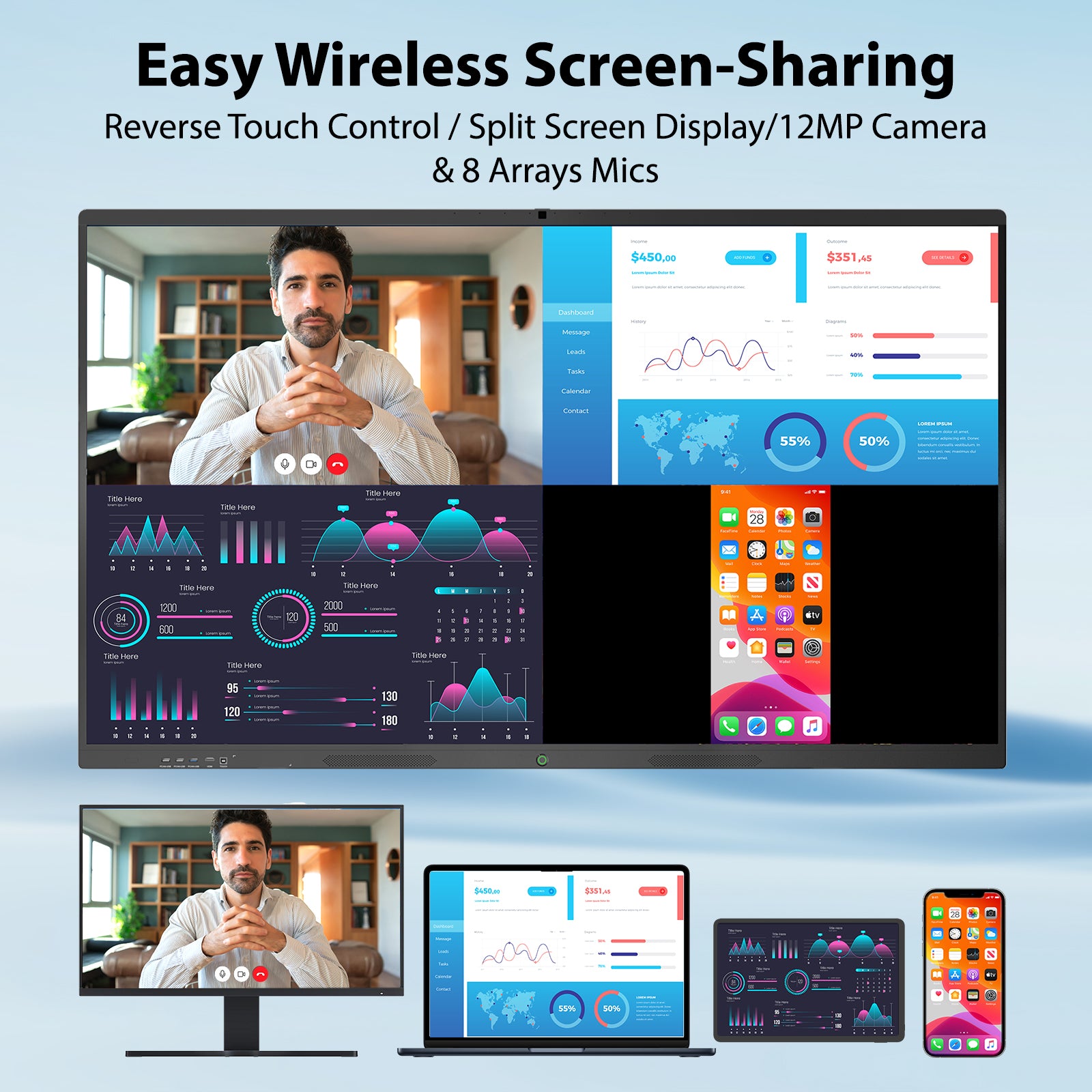 - REAL-TIME REMOTE VIDEO CONFERENCING : The JASZDOT smartboard connects office locations, enabling multiple users to collaborate simultaneously—ideal for vibe-driven brainstorming or virtual conferences.