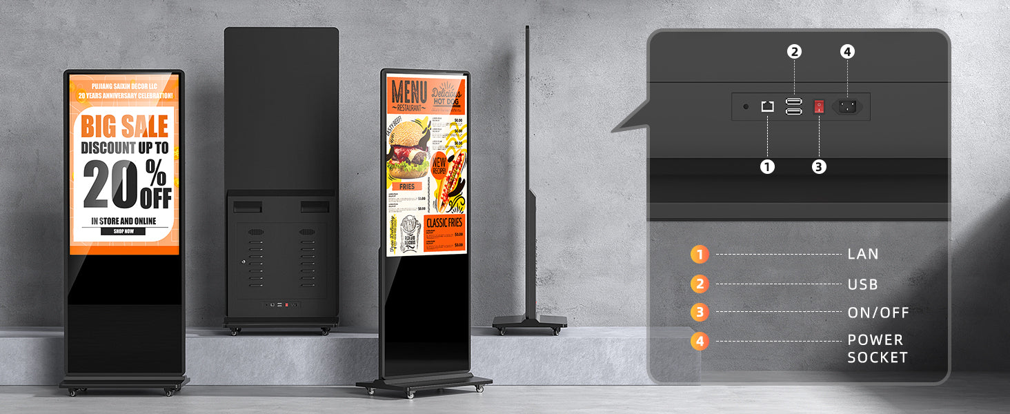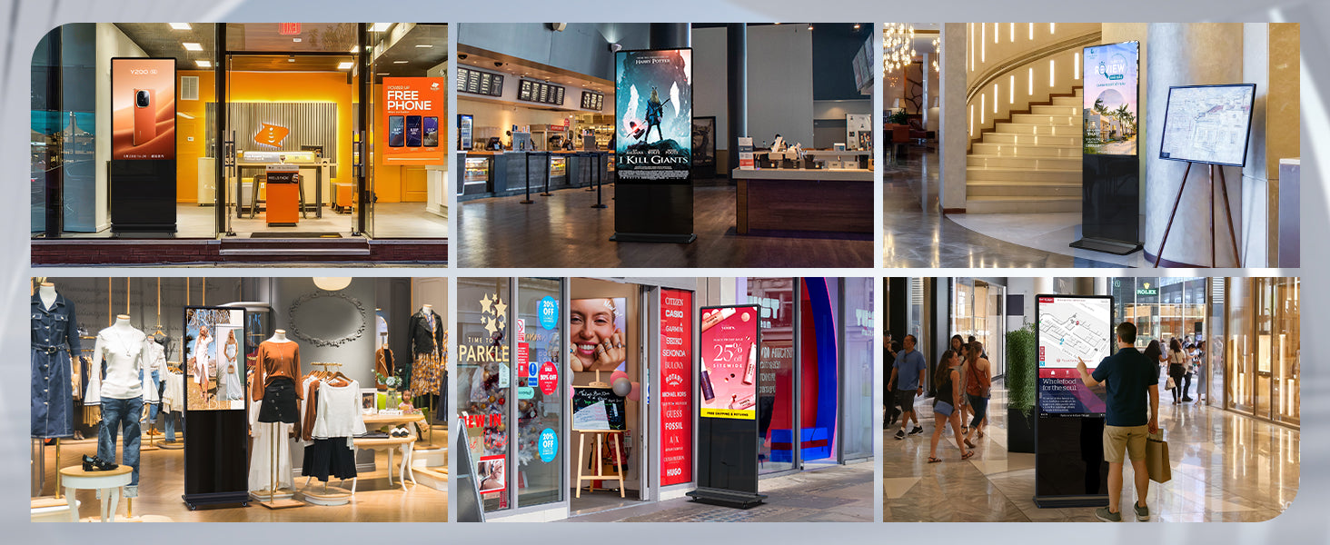 - VERSATILE SCENE APPLICATIONS: The freestanding advertising machine is designed for durability and sturdiness. It is widely used in high-traffic public places such as large shopping malls, supermarkets, hotel lobbies, restaurants, cinemas, retail stores, airports, and hospitals to display advertisements via large-screen terminal devices.