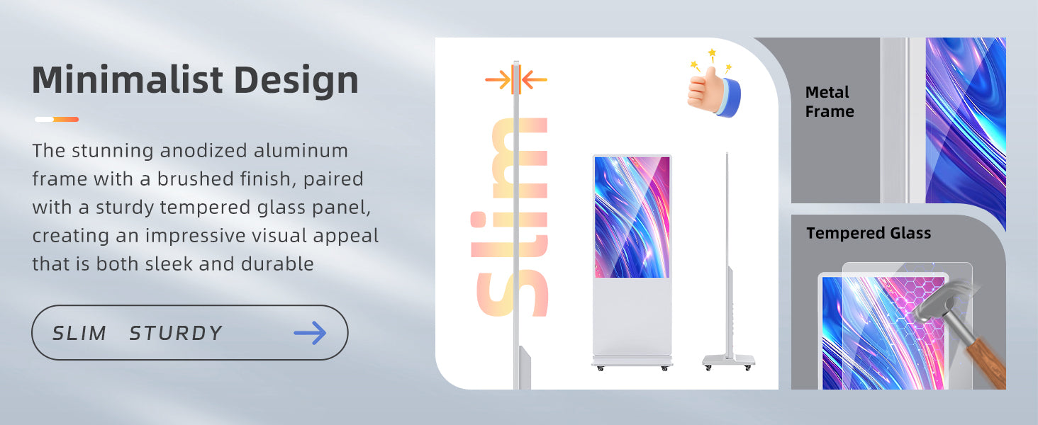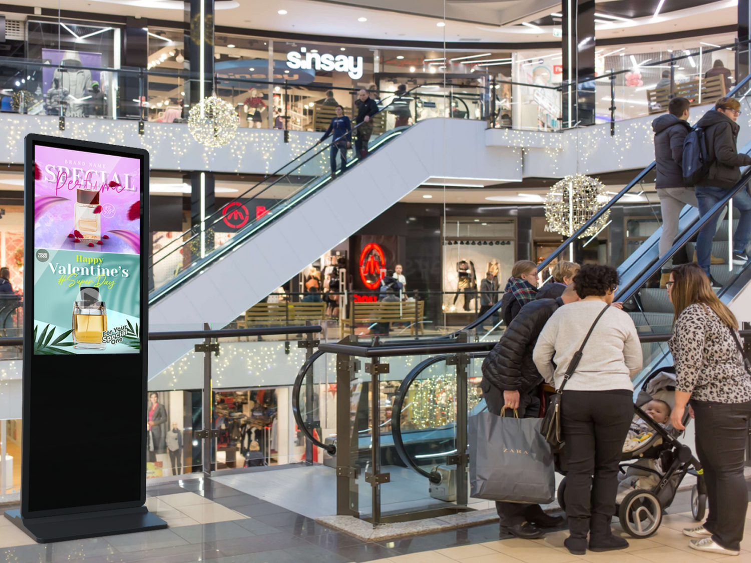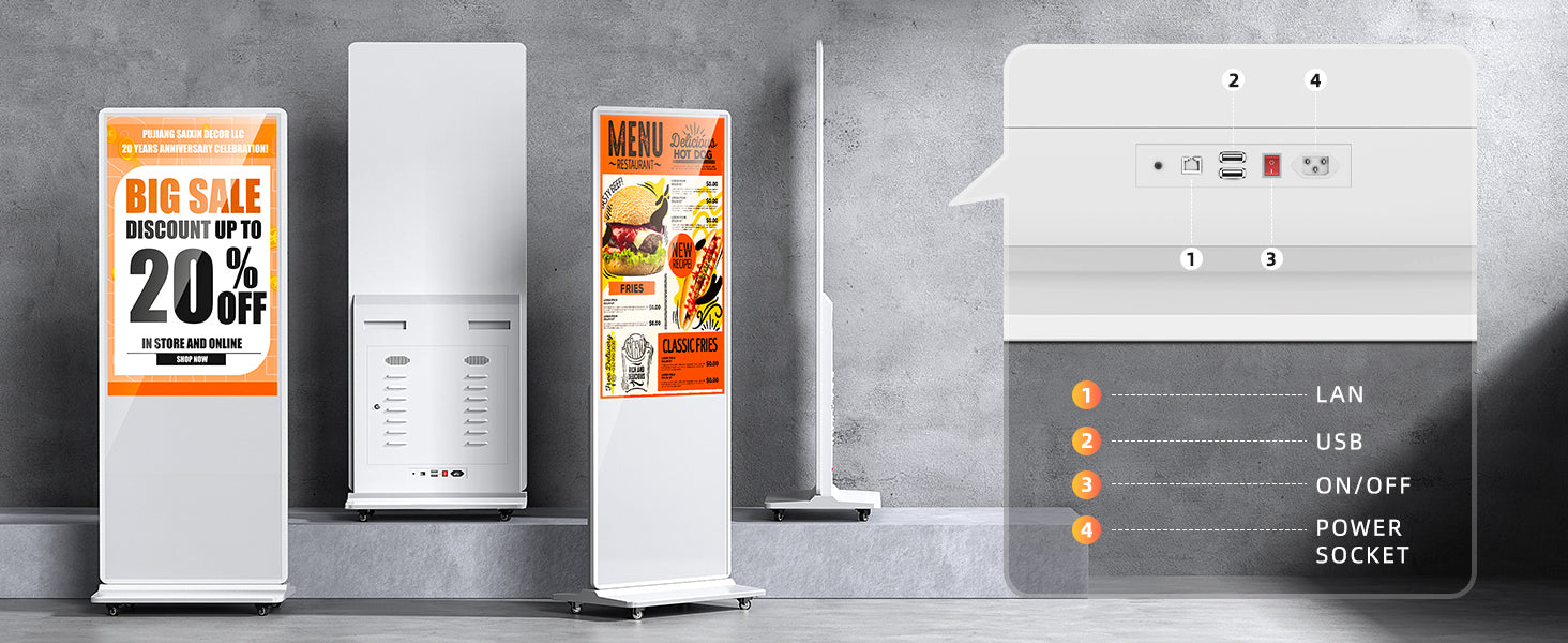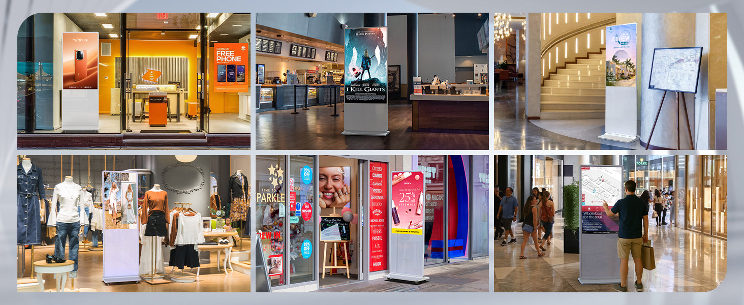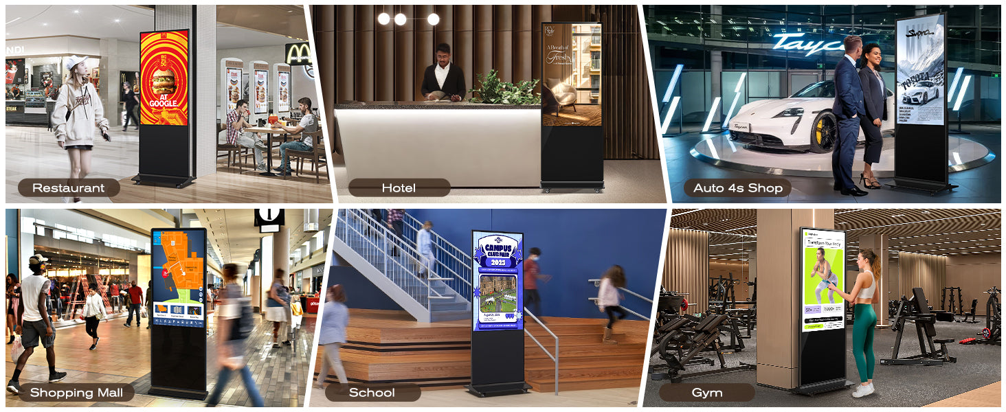 - MULTIFUNCTIONAL AD MANAGEMENT: The freestanding advertising machine is designed for durability and sturdiness. It is widely used in high-traffic public places such as large shopping malls, supermarkets, hotel lobbies, restaurants, cinemas, retail stores, airports, and hospitals to display advertisements via large-screen terminal devices.